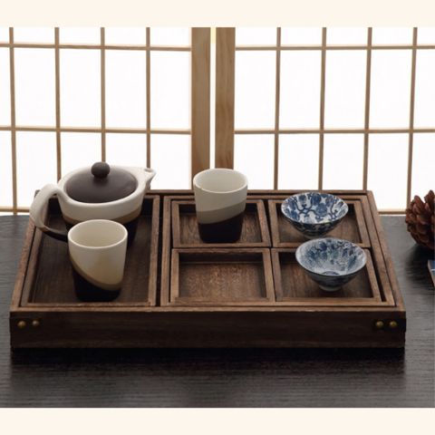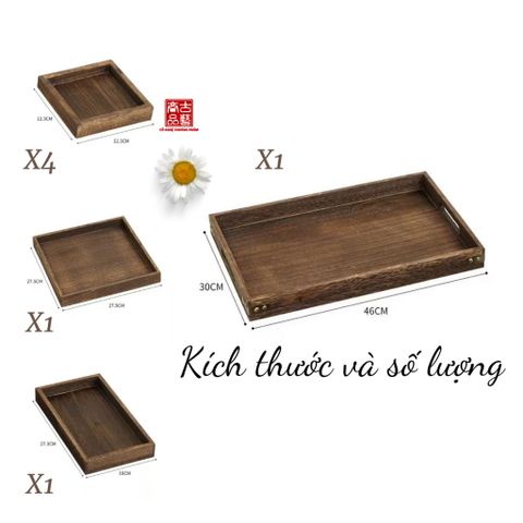 ️🎯Khay trà tối giản phong cách Nhật gồm có 7 món, bao gồm 4 đế nhỏ đựng trong 1 đế vuông, 1 khay to lại đựng trong đó 6 khay nhỏ hơn.